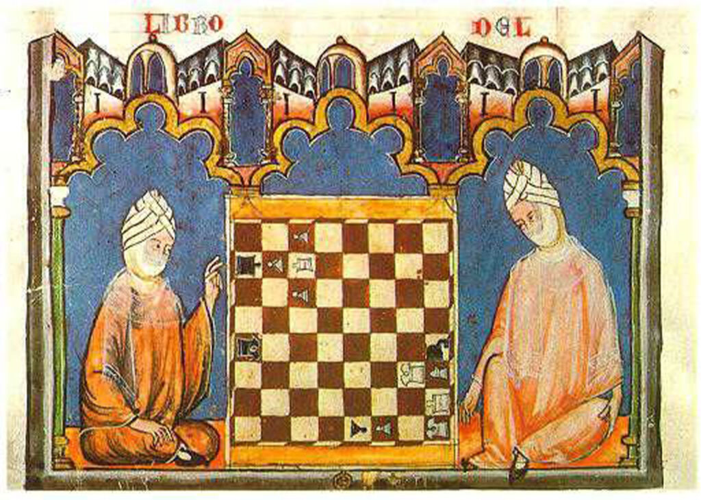 The Female Chess Players of the Middle Ages This rare miniature from the 1283 manuscript Libro de los Juegos features one of the most powerful depictions of women in chess history. Focused on the game with strategic depth under the shade of a tent, these two figures represent a union of intellect that transcends the social and religious boundaries of the era. Reflecting the multicultural “Convivencia” of Al-Andalus, this work proves that chess was not merely a courtly pastime, but a universal space of expression where women showcased their mental prowess. What is embodied at this table is a civilized dialogue between women of different faiths and cultures, meeting within the fair and structured world of the game.