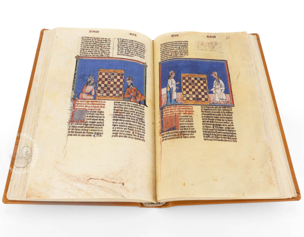 “Alfonso X the Wise’s Book of Chess, Dice, and Board Games”, 13. yüzyılda Kastilya Kralı Alfonso X tarafından yaptırılmıştır. Kitap, satranç, zar ve tahta oyunlarının kuralları ve stratejileri hakkında detaylı bilgiler sunar. Eser, 13. yüzyıl İspanyol kültürünün zenginliğini ve sosyal yapısını yansıtır.
