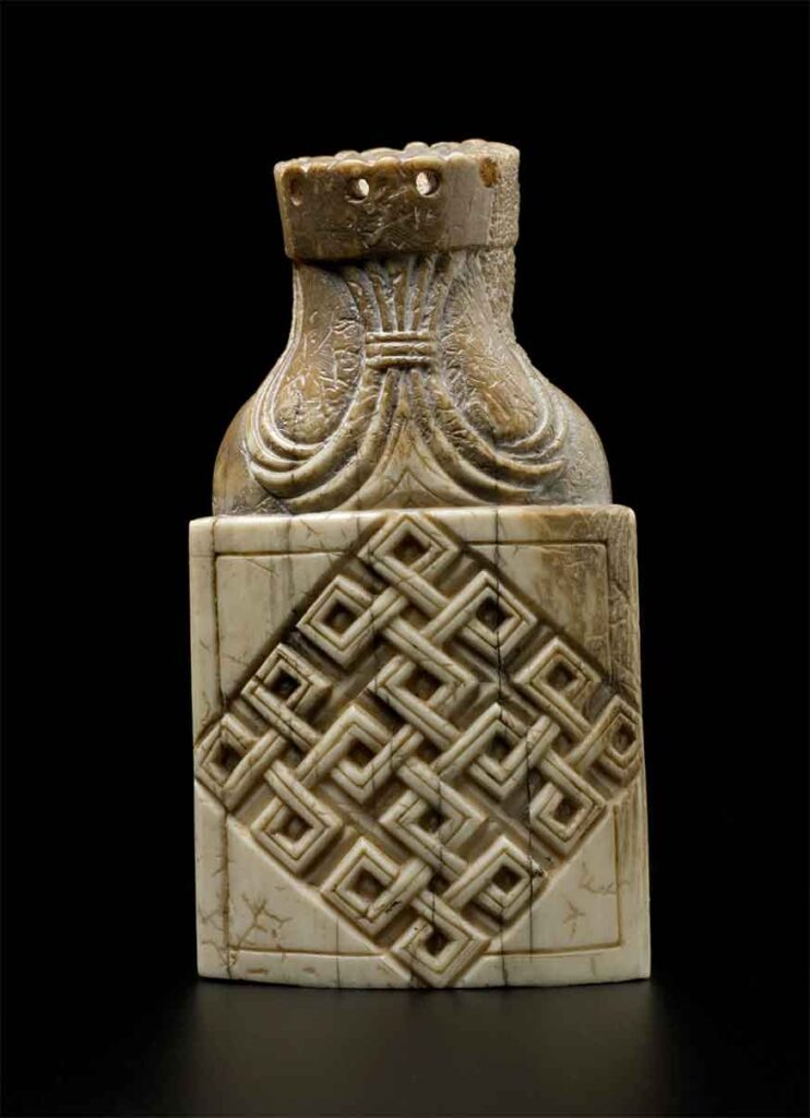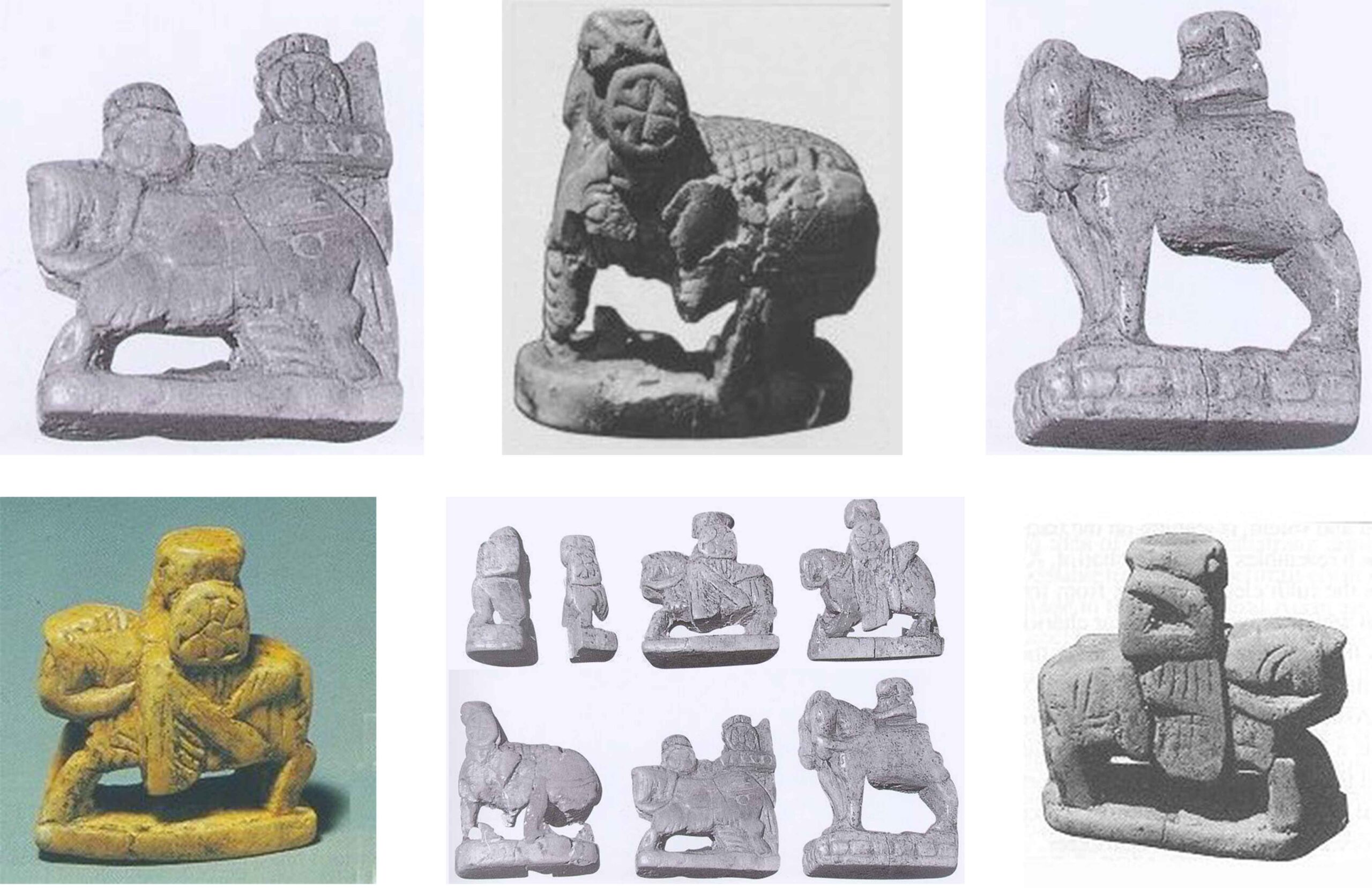 The ivory pieces from the 7th–8th century found at the Afrasiyab site in Samarkand represent the oldest known chess set. These detailed figurines provide a figurative look at the game’s Central Asian roots, featuring the Rook as a chariot with multiple horses, the knight piece is depicted as a cavalryman with a shield, and an elephant-mounted Alfil along with several pawn pieces. The set captures the military hierarchy of the Silk Road era before the move toward abstract designs.